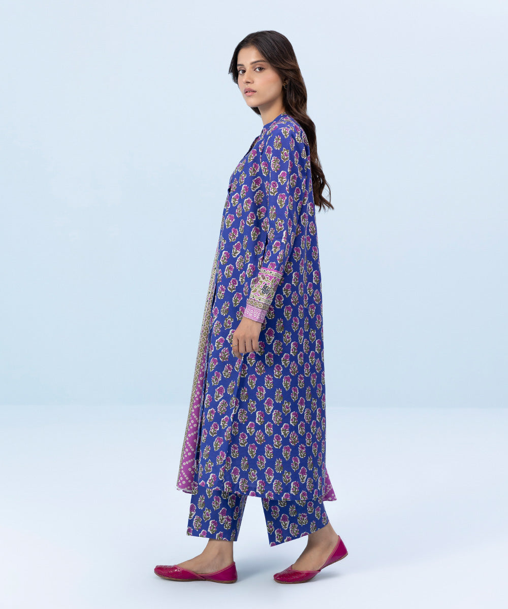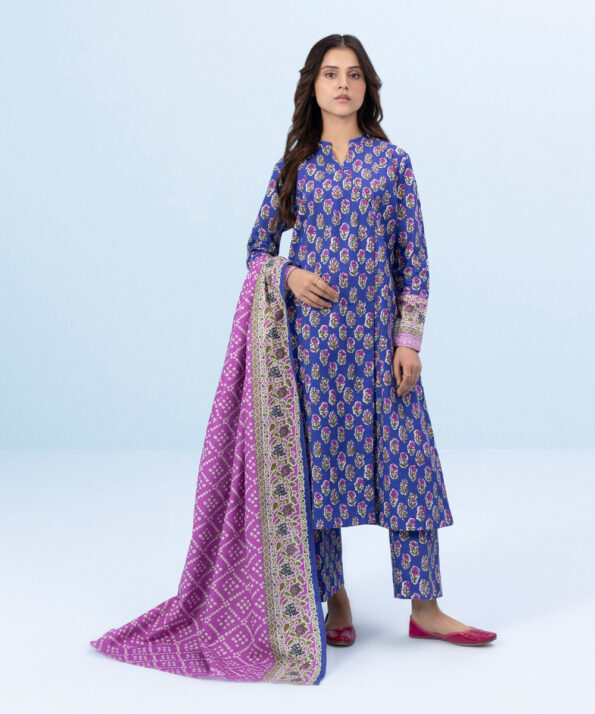 Step into the summer season with cool hues with this navy blue three-piece ensemble featuring a chiffon dupatta.